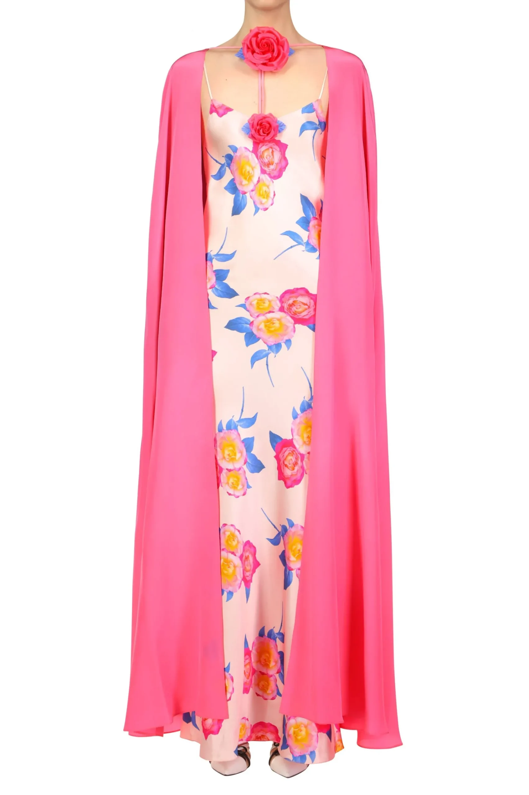 This Floor Length Bias Cut Cape Is Constructed Of Pink Silk Charmeuse. Clean Lines Flow From The Spaghetti Straps That Tie At The Neckline Make It A Breeze To Wear.
