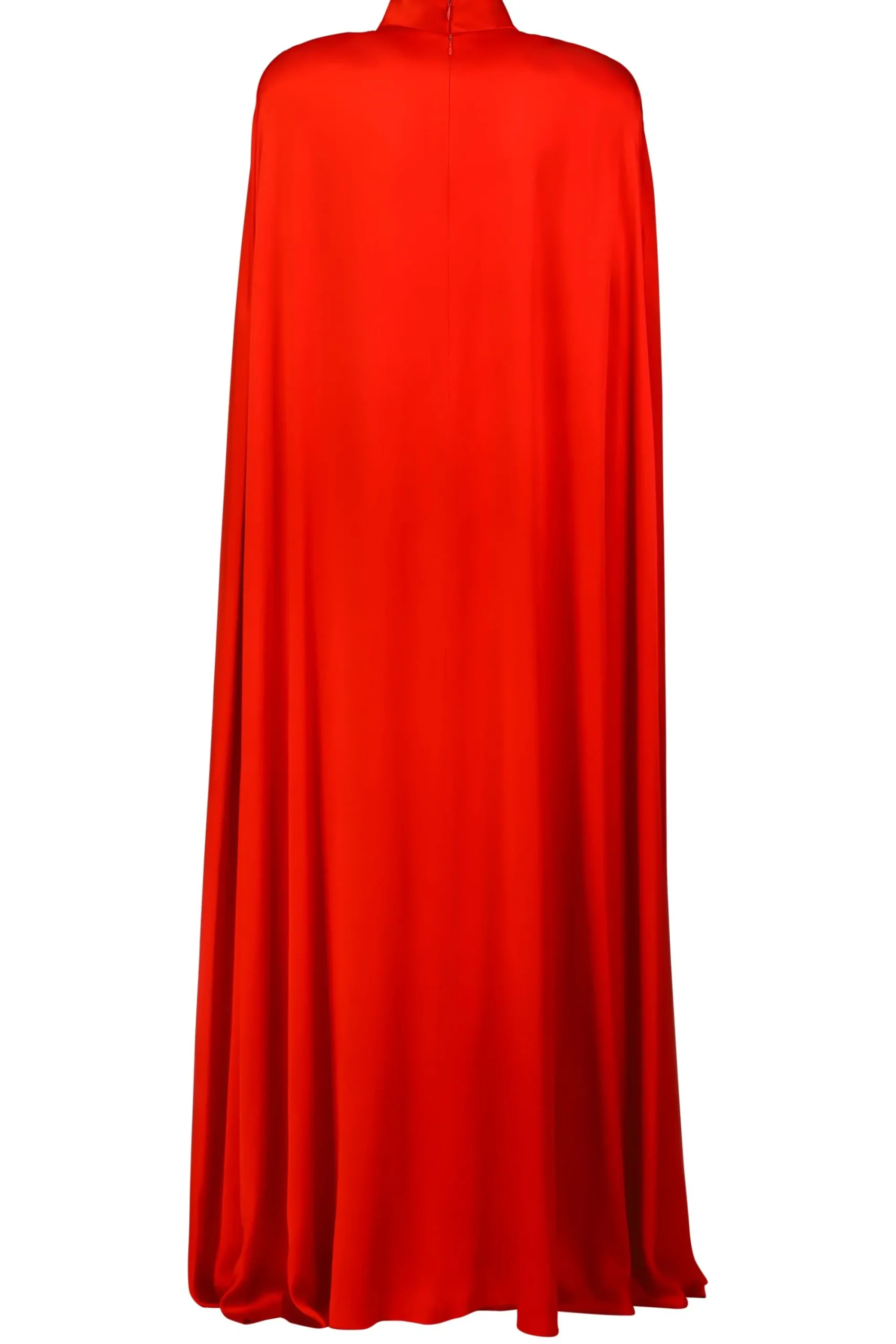 Slip On This Elegant Cape Gown For Soft, Flowy Movement. Cut On The Bias From Lustrous Red Silk Charmeuse, Its Clean Lines Flow From A Simple Mock Turtle Neckline That Make It A Breeze To Wear.